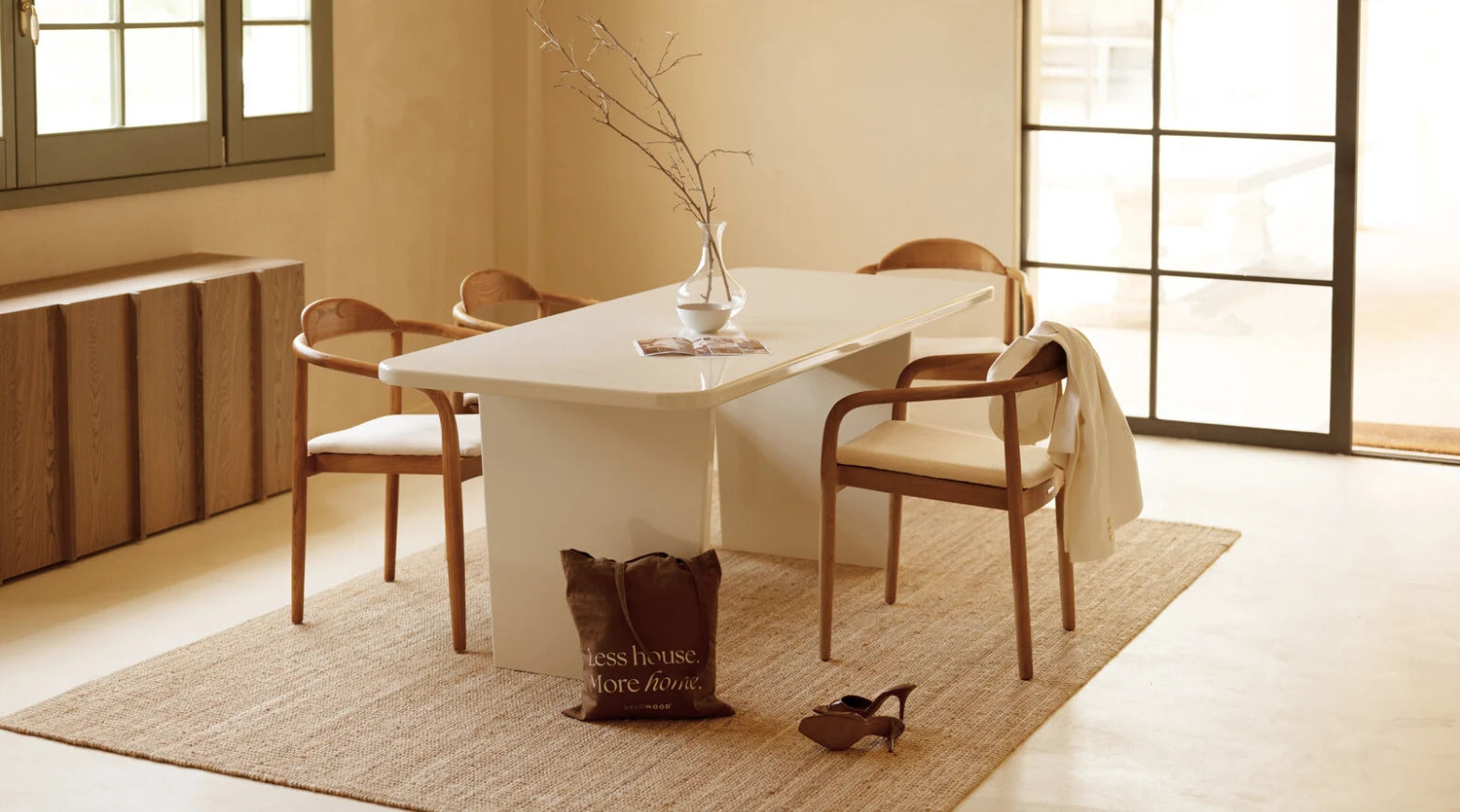 Mesa de Centro de microcemento blanco roto y patas de madera 95cm